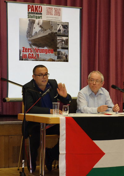 Reden wurden gehalten von Felicia Langer, Rania Madi (Badil-Schweiz), Samir Abed- Rabbo (USA), Alfred Niklaus v. Pax Christi, Flüchtlingskinder im Libanon, Partei Die Linke, Kultur des Friedens, GAM Stuttgart, Karl Schmidt (aktiv für die Überwendung der südafrikanischen Apartheid) von Ilan Pappe (England) wurde ein Grußwort gelesen...