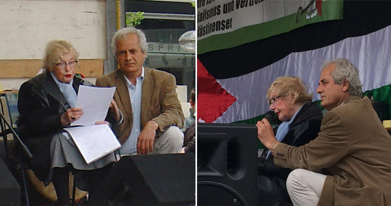 Links: Redebeitrag von „Palästina spricht“; rechts: Pako-Rede