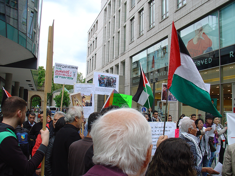 Unter blauem Himmel verlief unsere Kundgebung, die wir zusammen mit „Palästina spricht“ organisiert hatten diesmal sehr gut. Es wurden zahlreiche Reden gehalten und es gab kulturelle Beiträge.